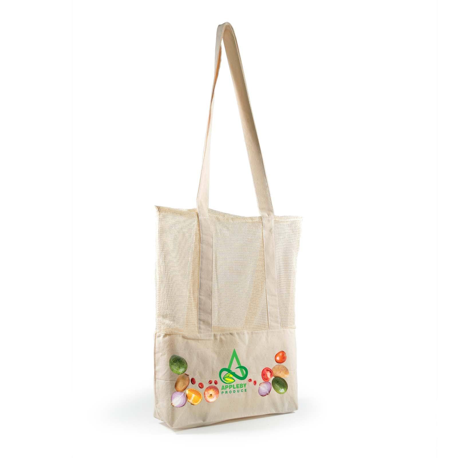 Custom Cotton Mesh Tote Bag – Reusable with Calico Base & Long Handles